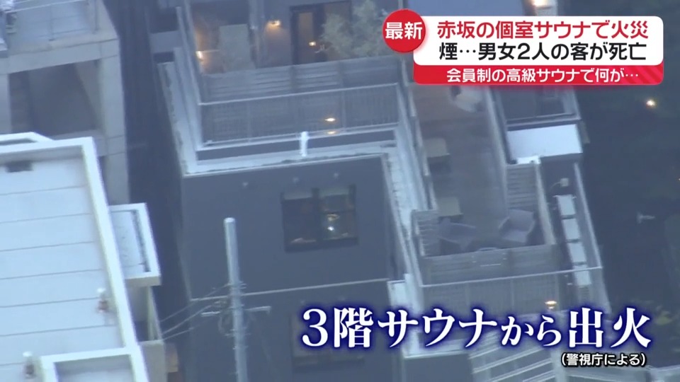 FNNプライムオンライン東京・赤坂にあるサウナで火事があり、客とみられる30代の男女2人が死亡しました。