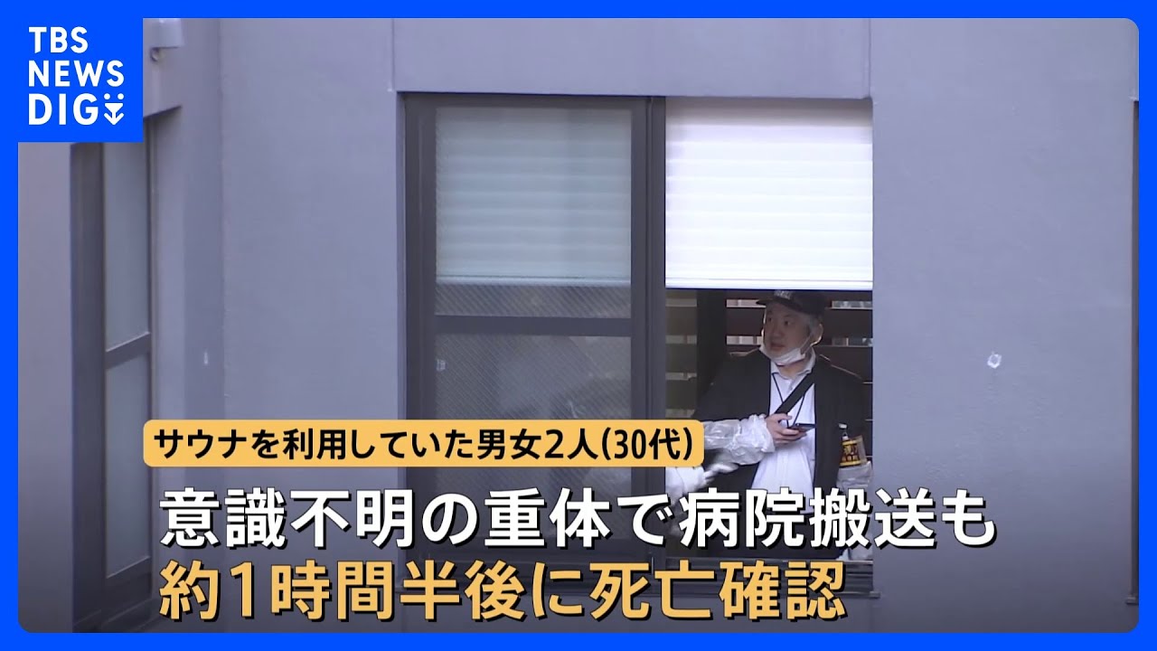 この火事で、客とみられる30代の男女2人がサウナ室内の入り口付近で倒れているのが見つかり、病院に運ばれましたがさきほど死亡が確認されました。