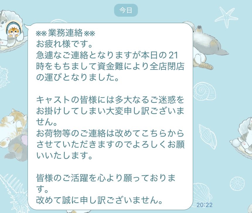 社長が部屋に来てマリングループの完全撤退&店を21:00に閉めるって聞かされて