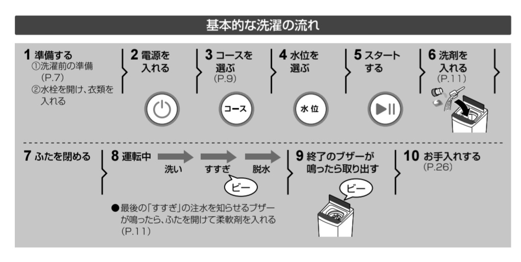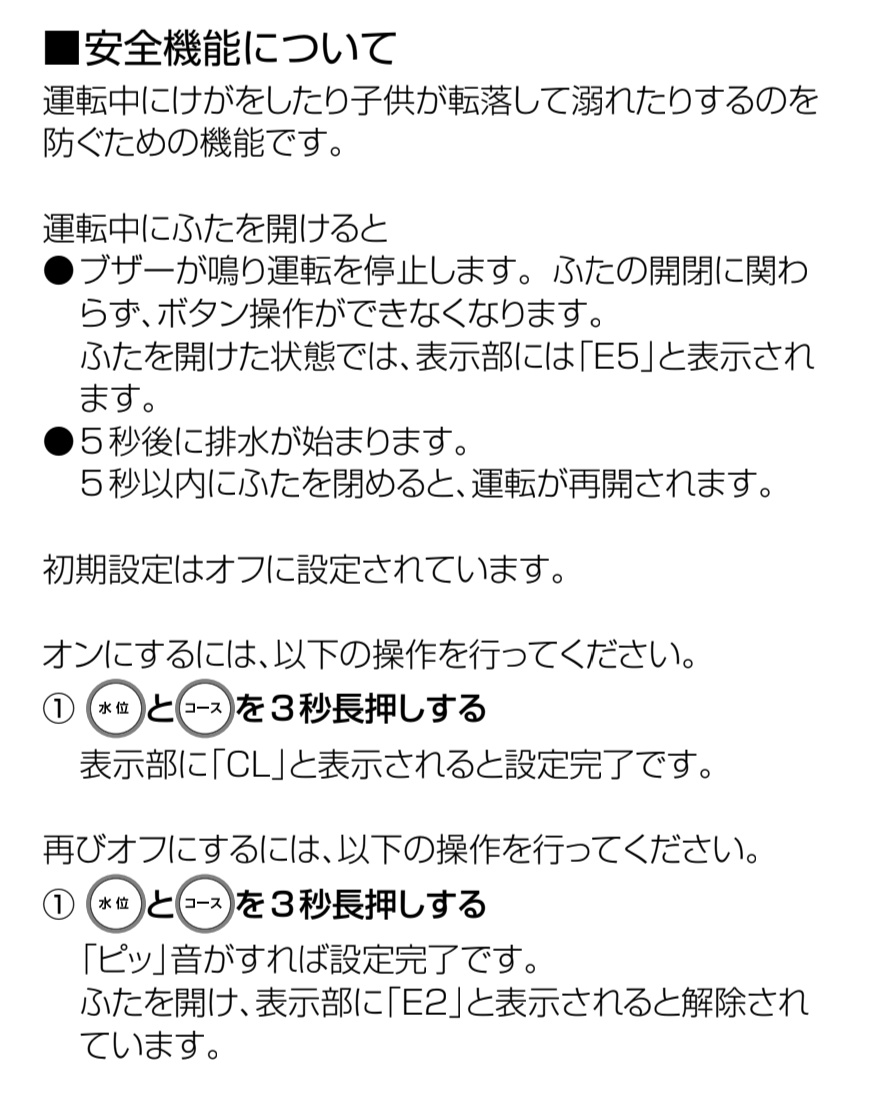 ふたロックが無いから途中で開けたら止まって排水するし、柔軟剤を入れるところがないからすすぎ前に一時停止するというワイルド設計
