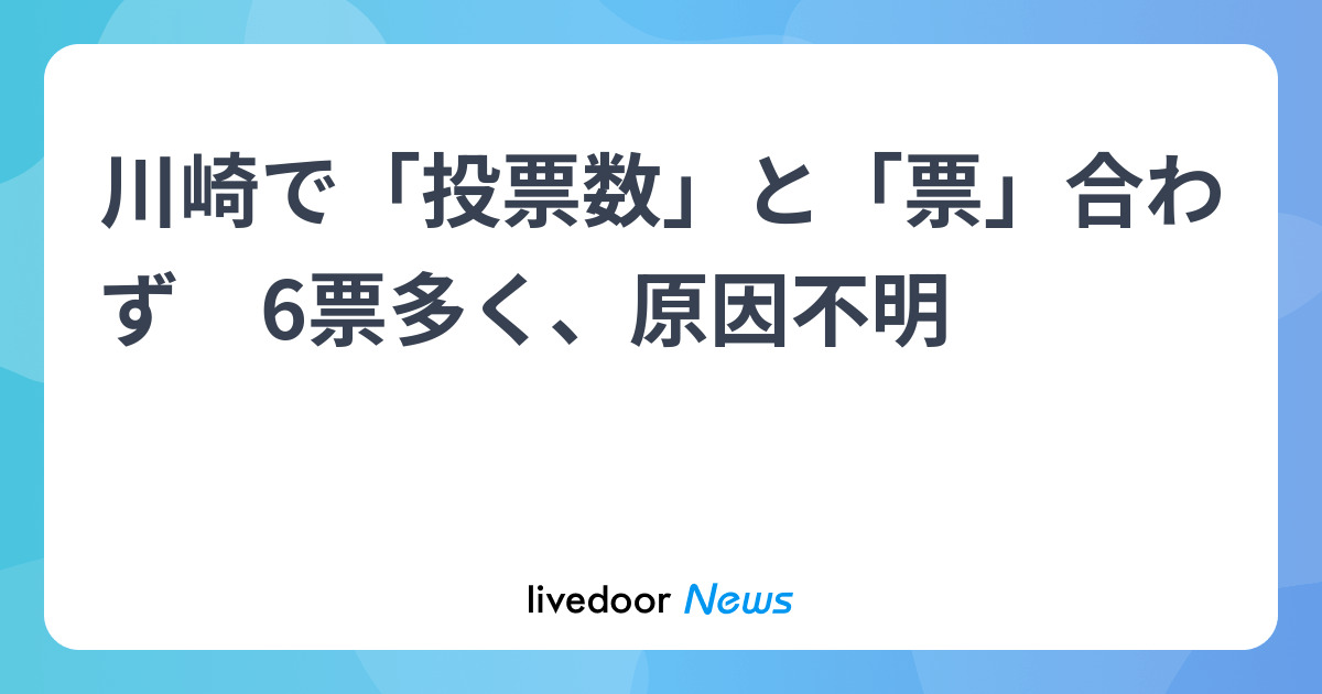 | 川崎市で投票者総数と票数が合わず(共同通信) - Yahoo!ニュース 川崎市で投票者総数と票数が合わず(共同通信) Yahoo!ニュース (出典:Yahoo!ニュース) |