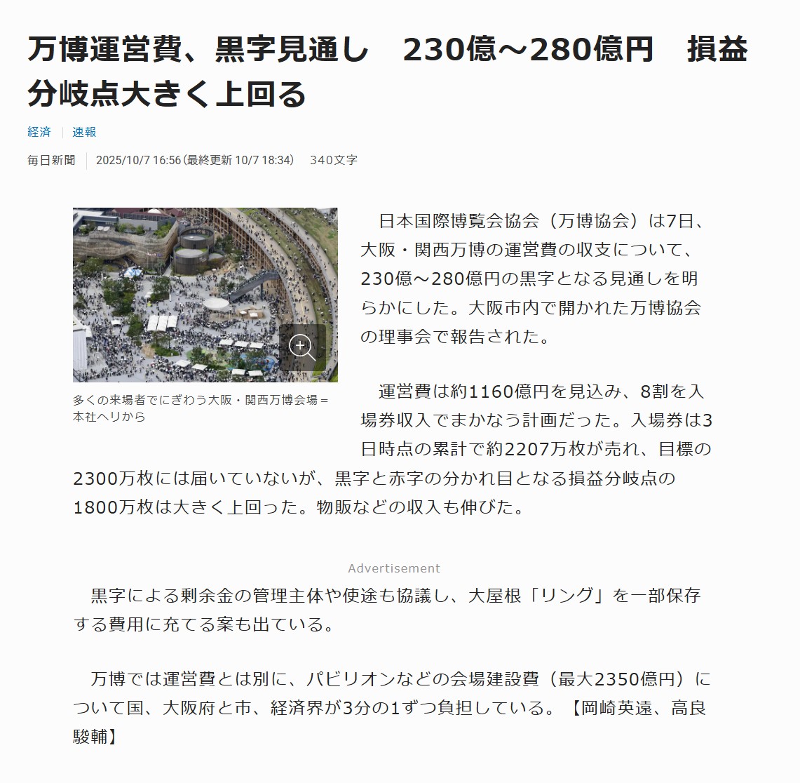 愛知万博はチャットgptに聞いたら建築費や諸々含めても黒字と言えるでしょうって言ってたんだけど?