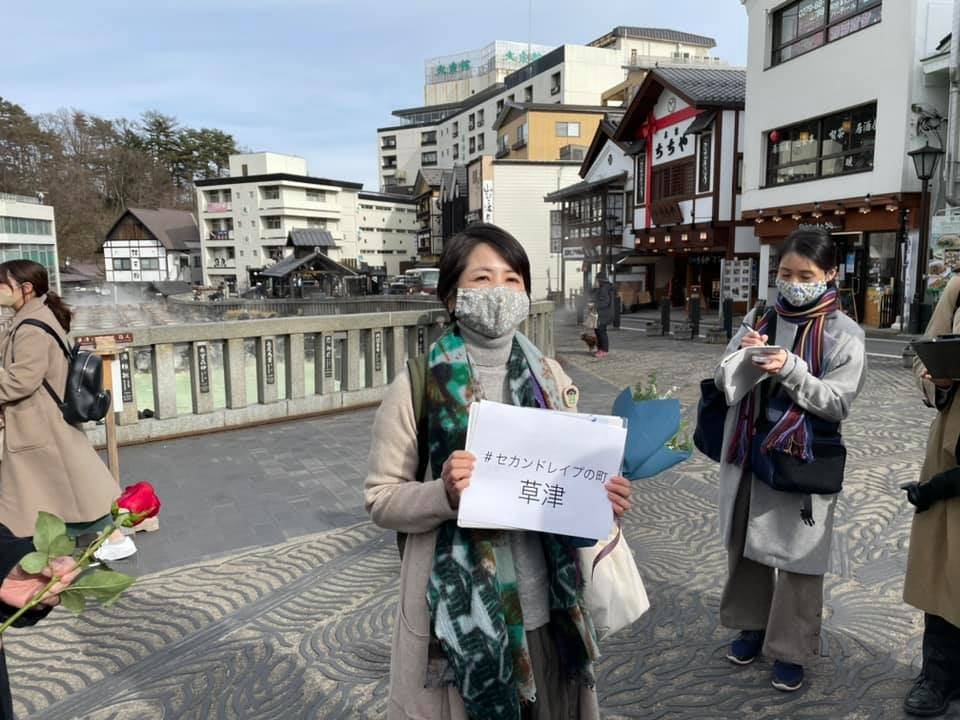 この問題を巡っては、23年11月に新井元町議が民事訴訟の法廷で性交渉はなかったと発言して以降、著名人や団体による謝罪表明が相次いでいる。 湯畑でのデモの記事を載せた共産党の機関紙「しんぶん赤旗」は同年12月、編集局次長らが役場で町長に謝罪した。