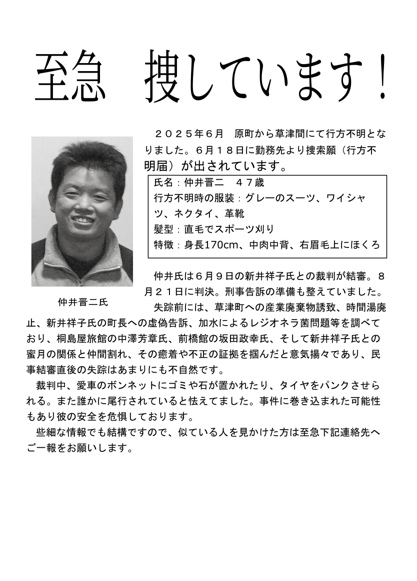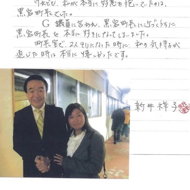 2025/10/16 17:08 群馬県草津町の新井祥子元町議(56)が黒岩信忠町長(78)と町長室で性交渉したと虚偽の告白をした問題を巡り、元町議を支持して町や議会を批判した団体の元代表が15日、黒岩町長に謝罪した。町長は「事実関係をきちんと把握して活動を」と求めた。一方、名誉などの罪に問われた元町議に対する前橋地裁判決が確定した。民事と合わせて告白を虚偽と認定した判決が確定し、一連の問題は終結した。