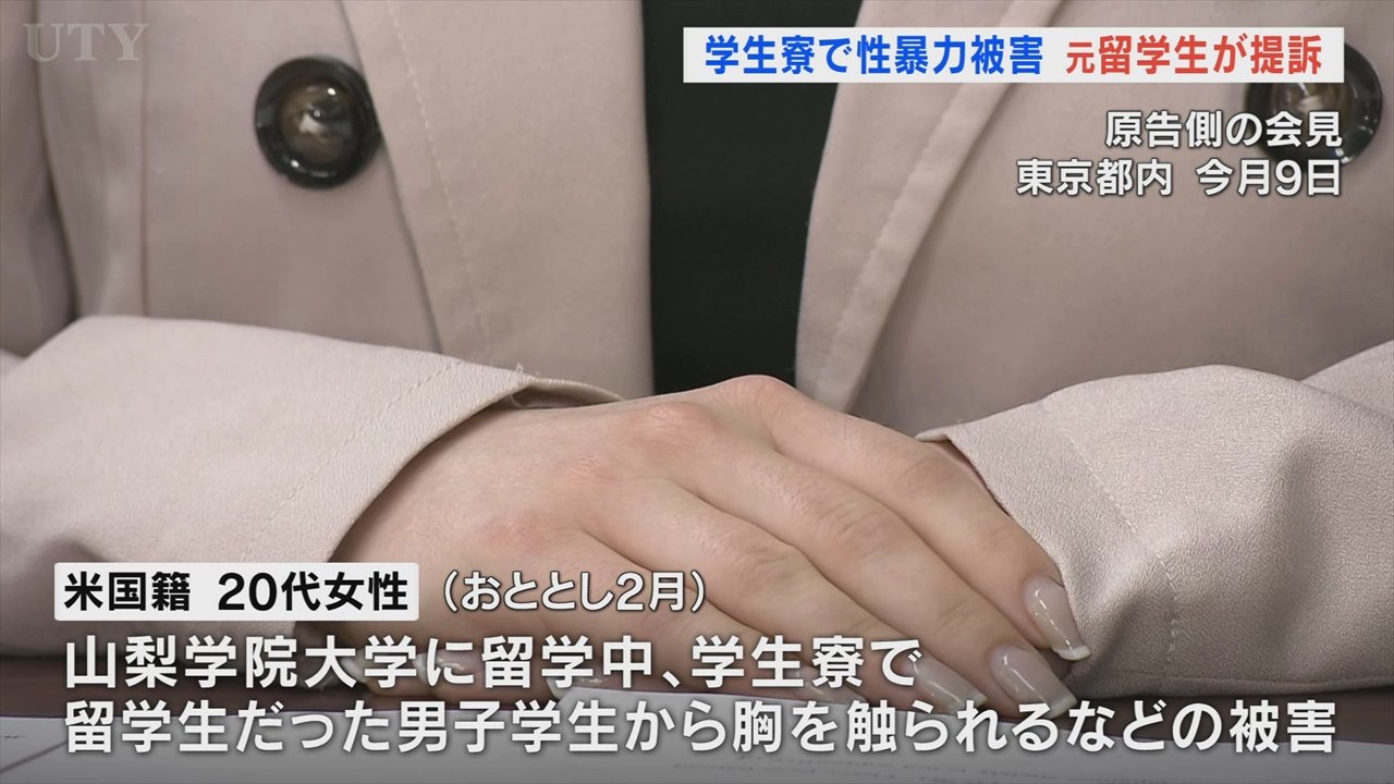 山梨学院大をめぐっては、今年5月、元留学生のアメリカ人女性が、ほかの留学生から性暴力を受けたとして、学校法人や相手の留学生を提訴している。