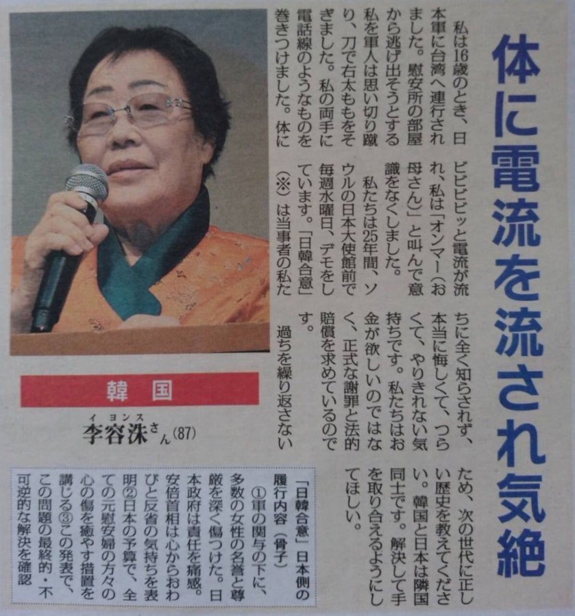 (8)筆者が最近傍聴した集会にも、元慰安婦が招かれ、体験談を語ったが、その上品で温和な顔立ちの元慰安婦が、