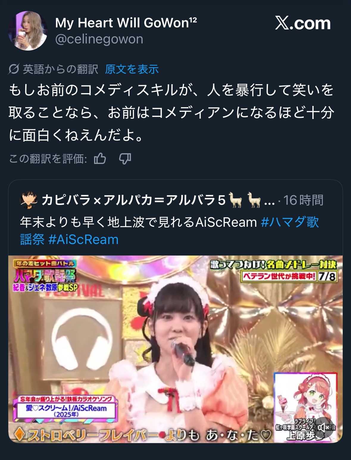 外国人「暴力しか出来ないのであればコメディアンになれるほどのスキルがない」
