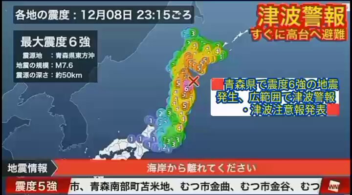 【地震速報】青森県で震度6強 沿岸部に津波警報 | NHKニュース | 地震