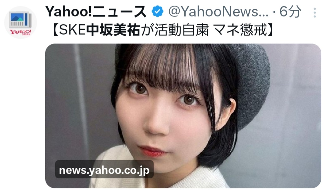 グループ公式サイトで「この度、マネージャーを担当していたスタッフより中坂美祐に対して業務の範疇を超える連絡等が行われていたことが発覚いたました。